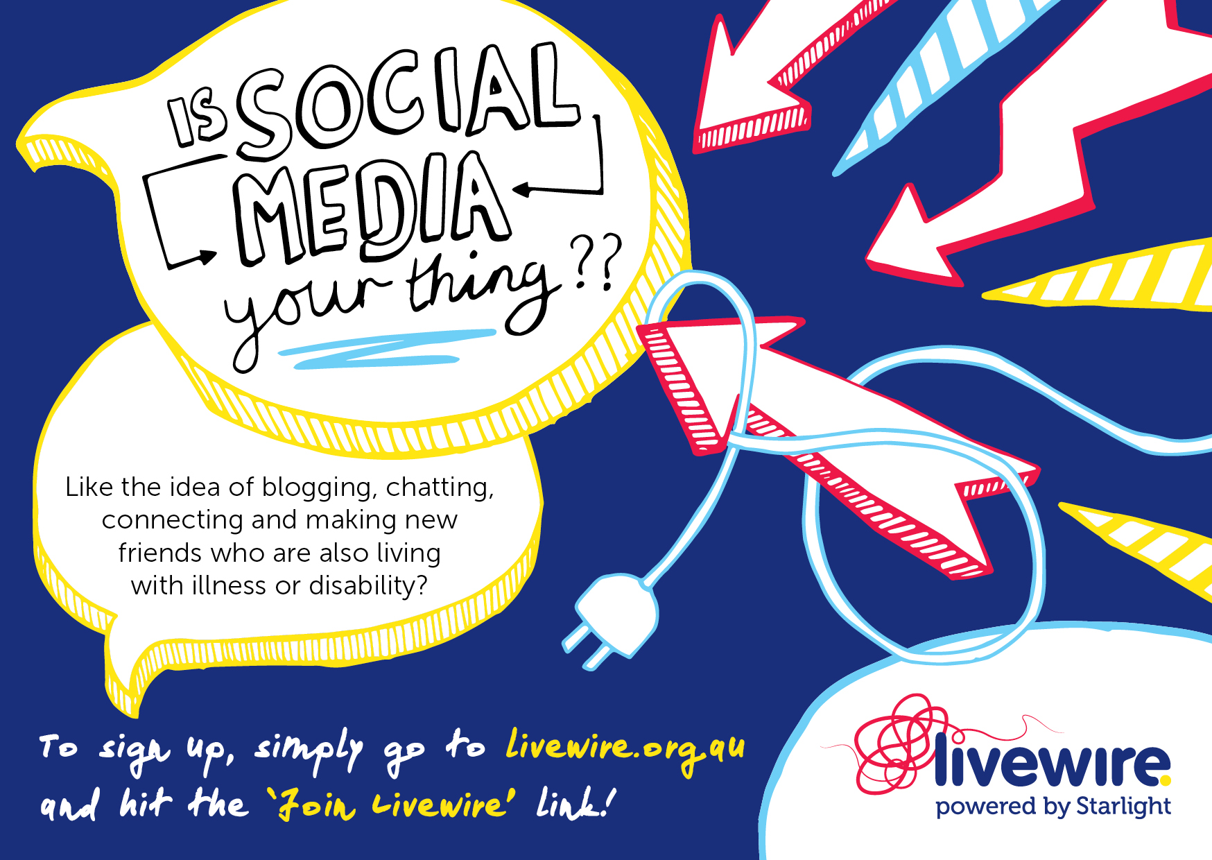 www.livewire.org.au is a Starlight Children’s Foundation program for 10-20 year olds around Australia who live with an illness or disability (and their siblings!) Livewire is all about having fun and being connected in a safe, online community.